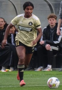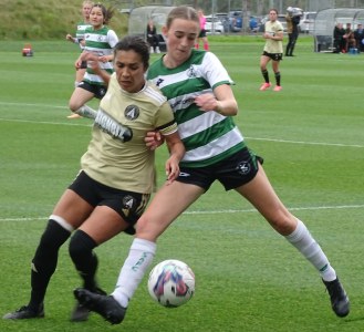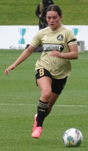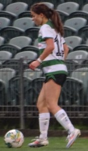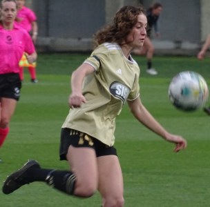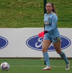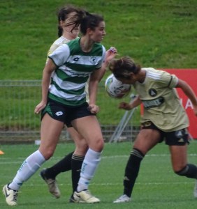 ![]() Amberley Hollis (WS) leaps to keep out a long-range free-kick from Chelsea Elliott (AU)
