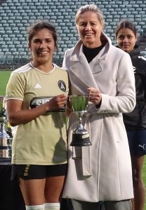 ![]() Chloe Knott (AU) receives the Maia Jackman Trophy from the legend herself