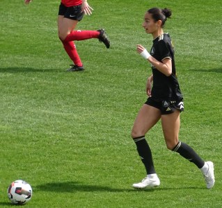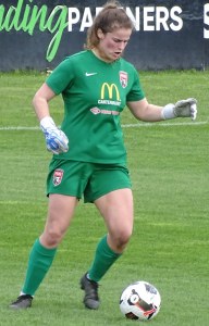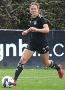 ![]() Danielle Canham (AU) is fouled by Darsha Keogan (CUP) as Chloe Knott (AU) looks on