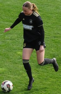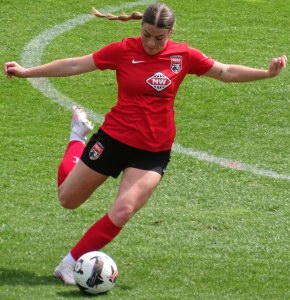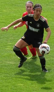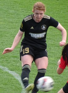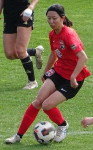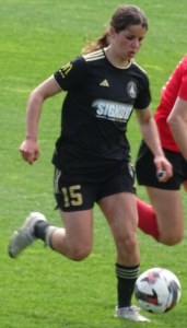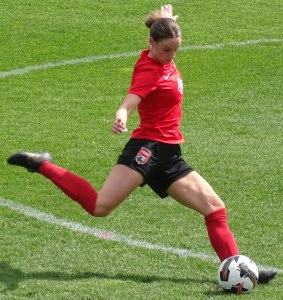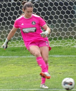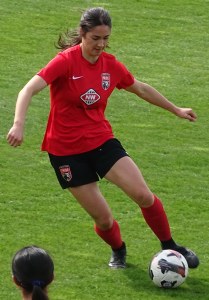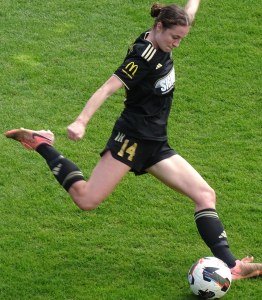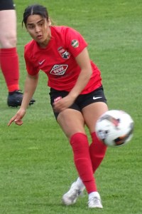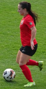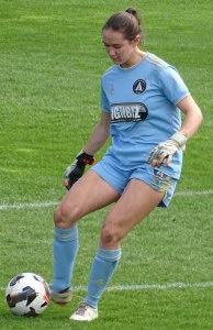 ![]() Rene Wasi (AU) plays a pass in front of her team's dugout