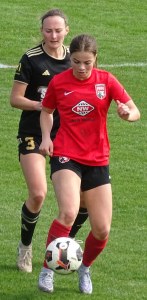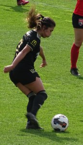 ![]() Anya Stephan (CUP) shields from Jess Philpot (AU)