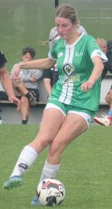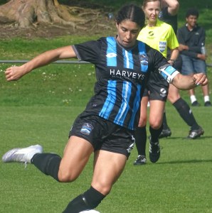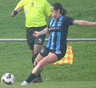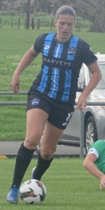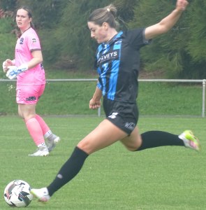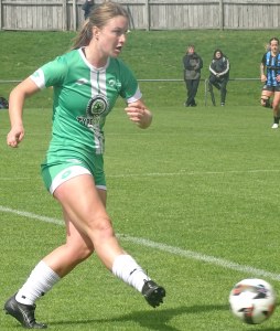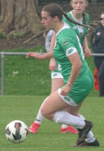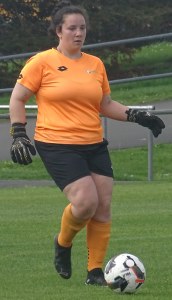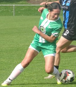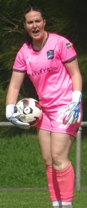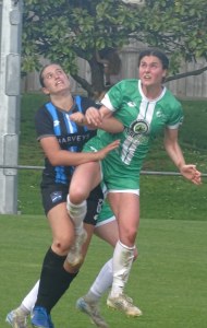 ![]() Hazel Marwick (Cen) shields from Lorna Selby (WCR)